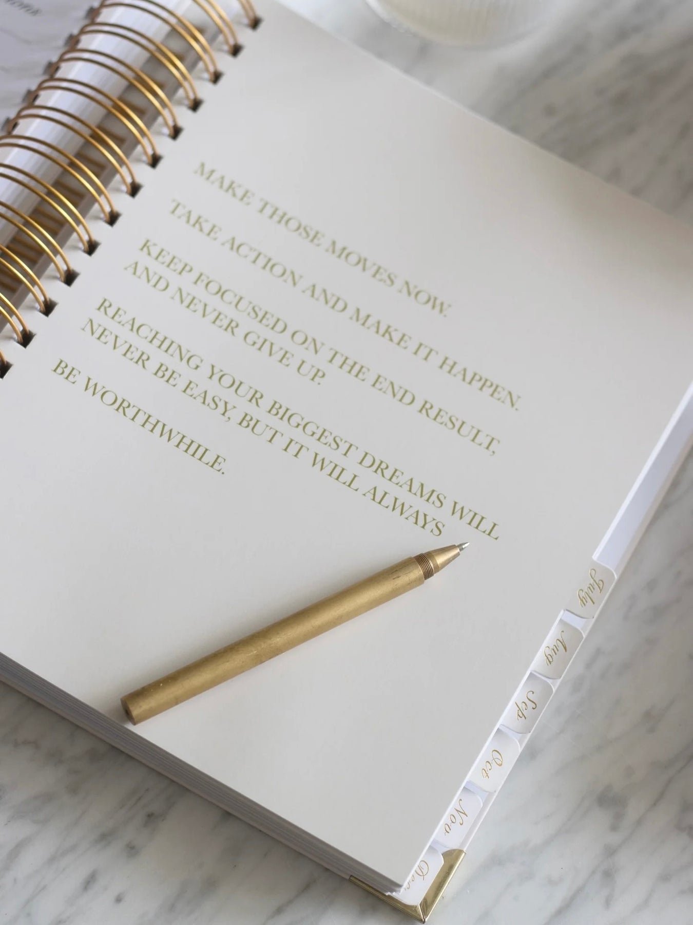 Gold Wire Binding - Elegant and durable, allowing the planner to lay perfectly flat.